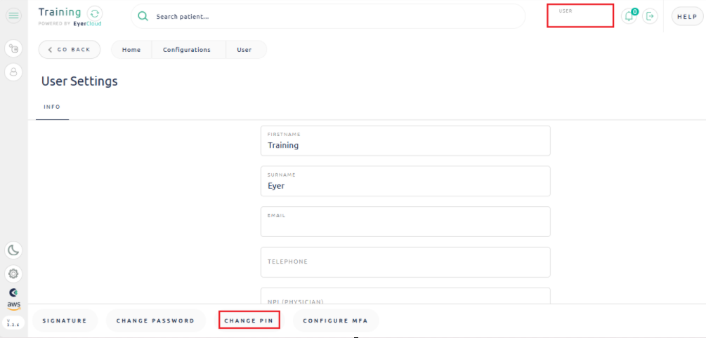 PIN is a numeric password of at least four digits, created by the user to access the Eyer.