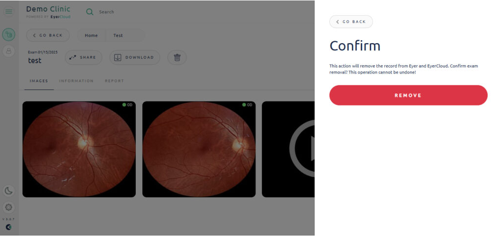 It is possible to delete exams using EyerCloud. To do this, simply follow the steps below: