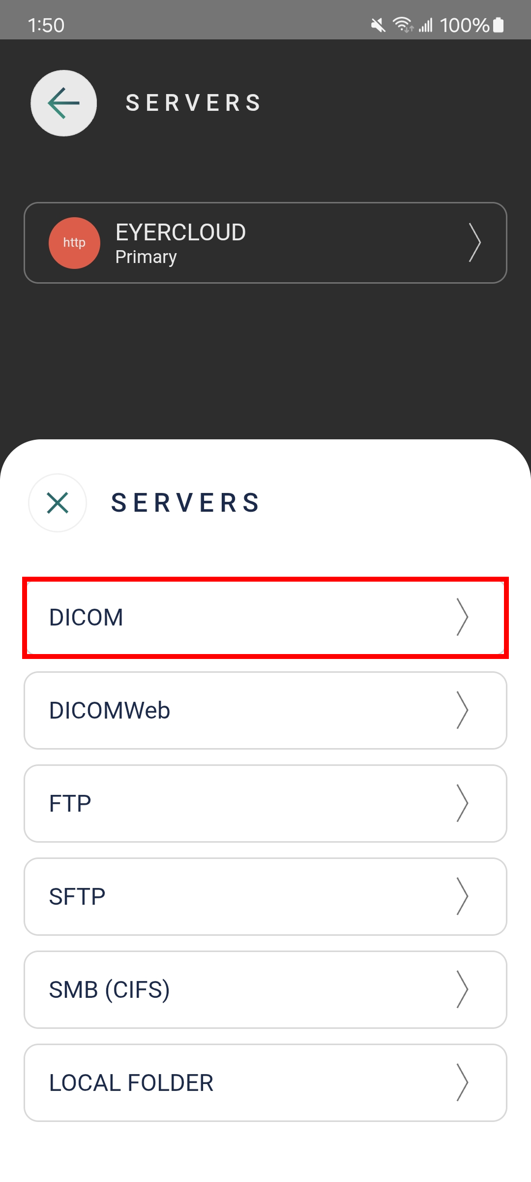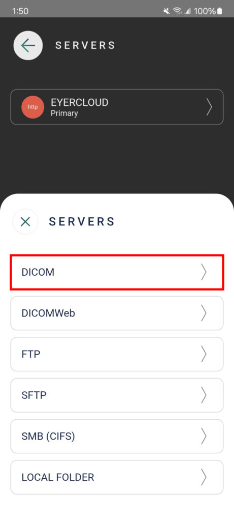 - Press the “Add Server” button and choose the appropriate server type (e.g., DICOM).