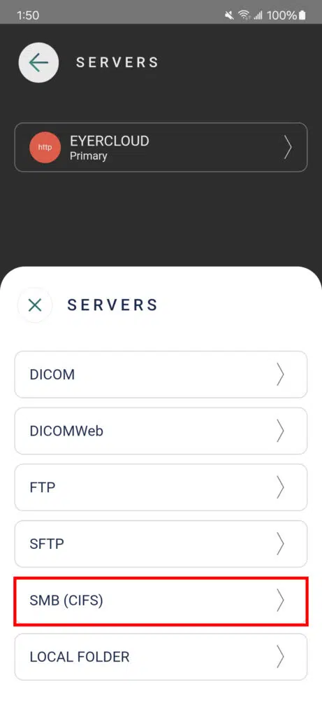 3. Press the “Add Server” button and choose the appropriate server type (e.g., SMB).