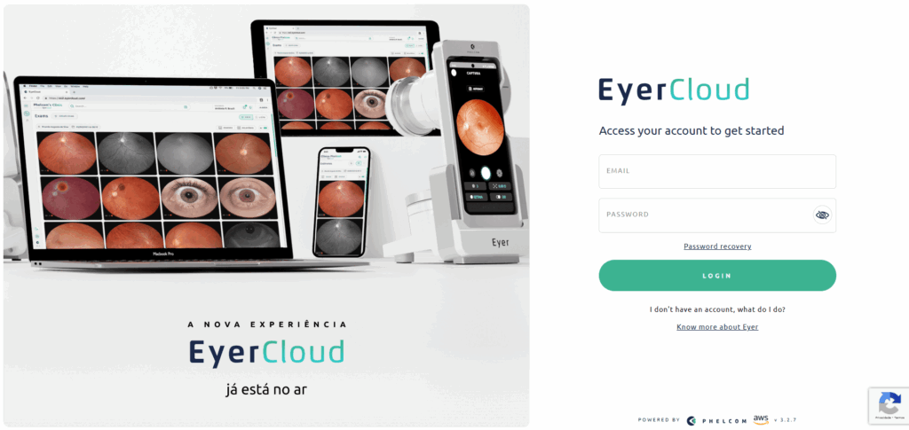 Access EyerCloud to enter the Phelcom web platform. Enter your registered email and password.