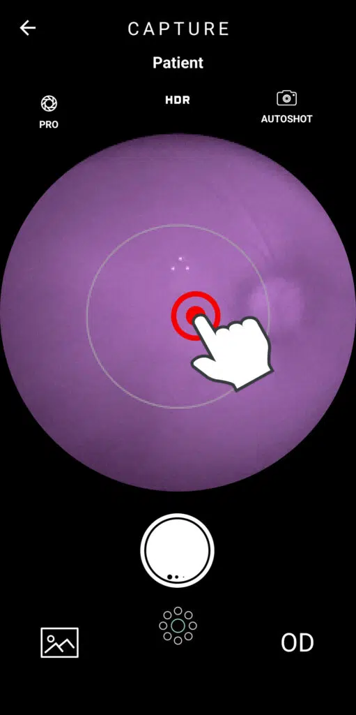 - Tap the center of the image to activate the flash for the patient. However, the image will not be captured but the camera’s focus will be automatically adjusted.