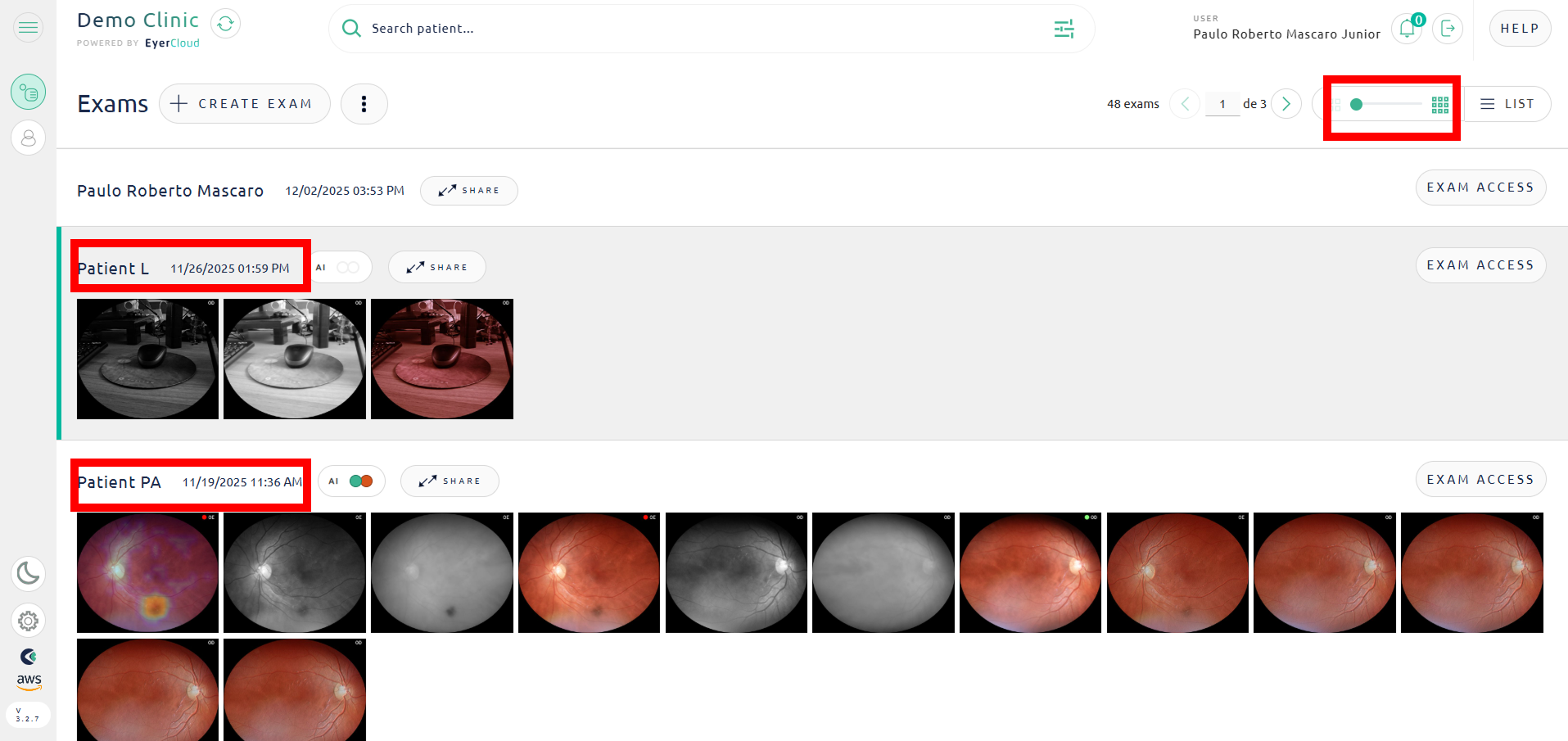 To view your most recent exams, go to EyerCloud and click on “Exams”. The exams will be displayed in descending chronological order.