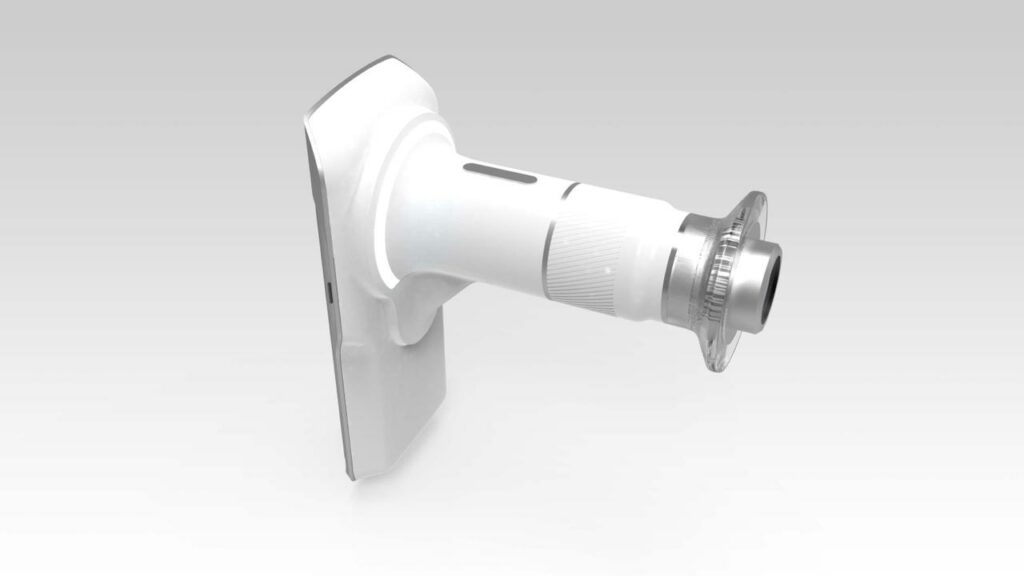 Outro ponto crítico foi a ergonomia. Era fundamental garantir estabilidade na captura das imagens, mesmo com o manuseio semelhante ao de um smartphone. O formato, o peso e o equilíbrio do equipamento foram cuidadosamente estudados para reduzir tremores e proporcionar maior conforto durante o uso prolongado.