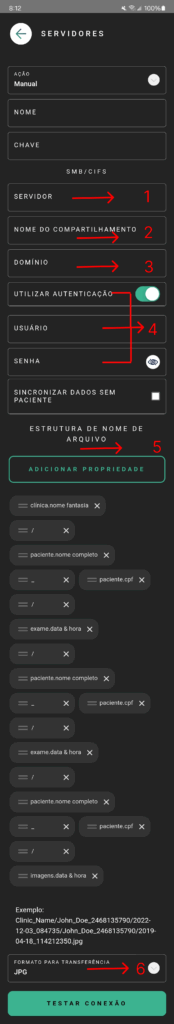 Preencha os campos com as informações do Servidor criado no computador e clique no botão Check para concluir a configuração.