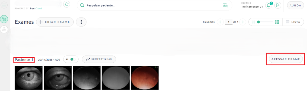 Para isso, localize o Paciente e cliente em “Acessar Exame“.