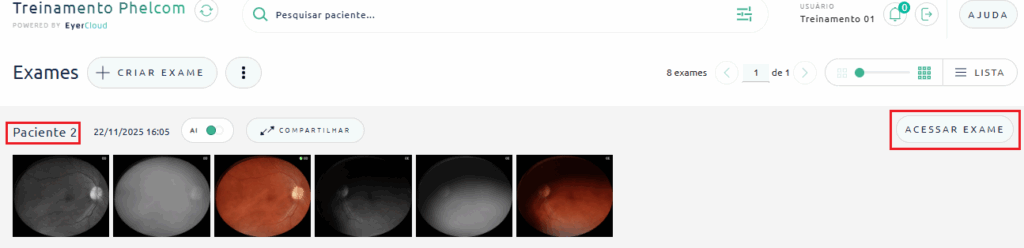 Para fazer o download de uma imagem, localize o paciente e clique em “Acessar Exame“
