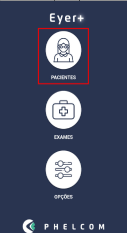 Clique na opção “Pacientes” na tela principal, selecione e abra o paciente que deseja apagar o exame e clique em “Exames“.
